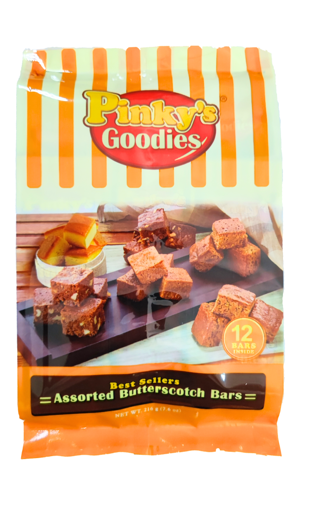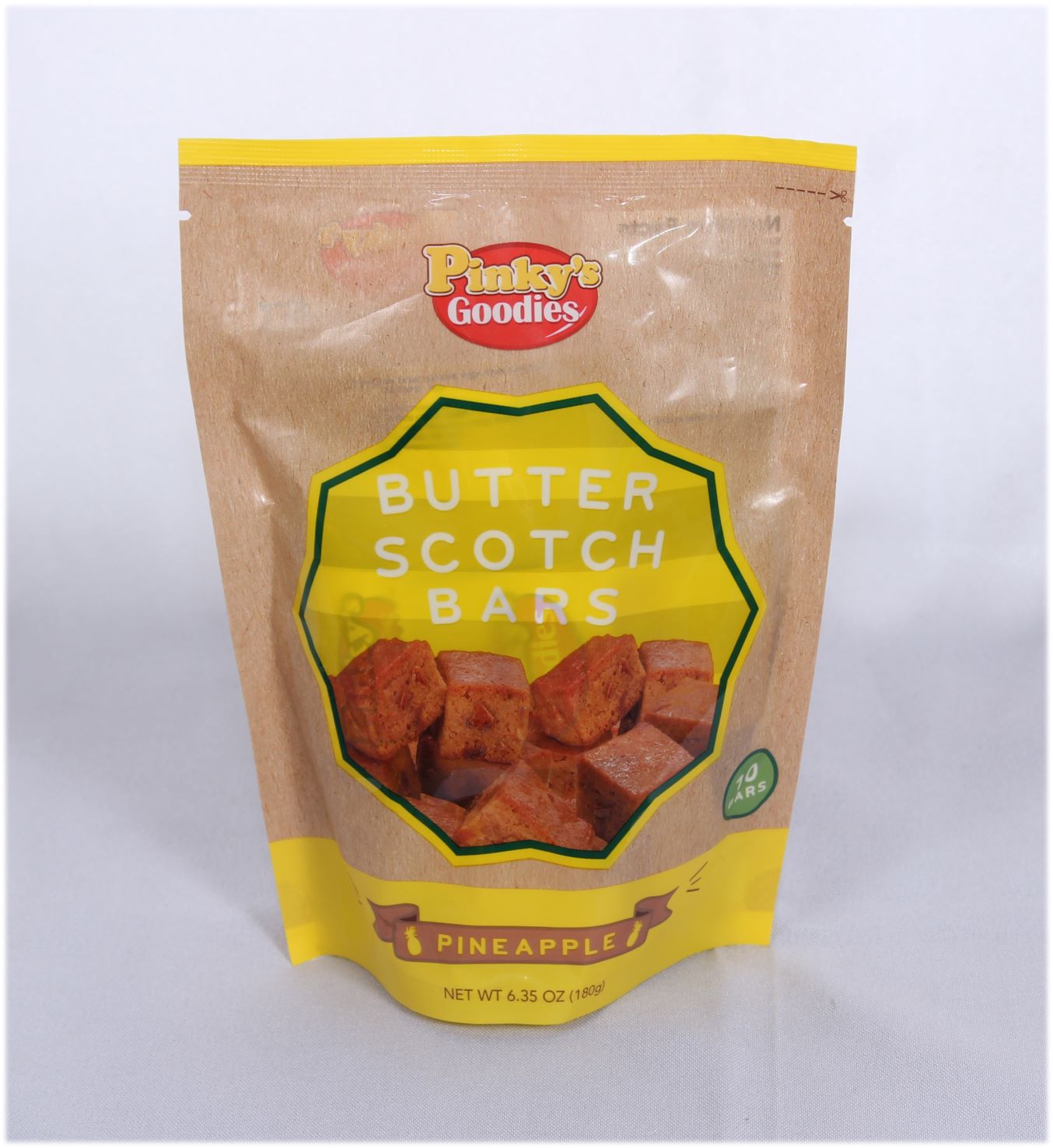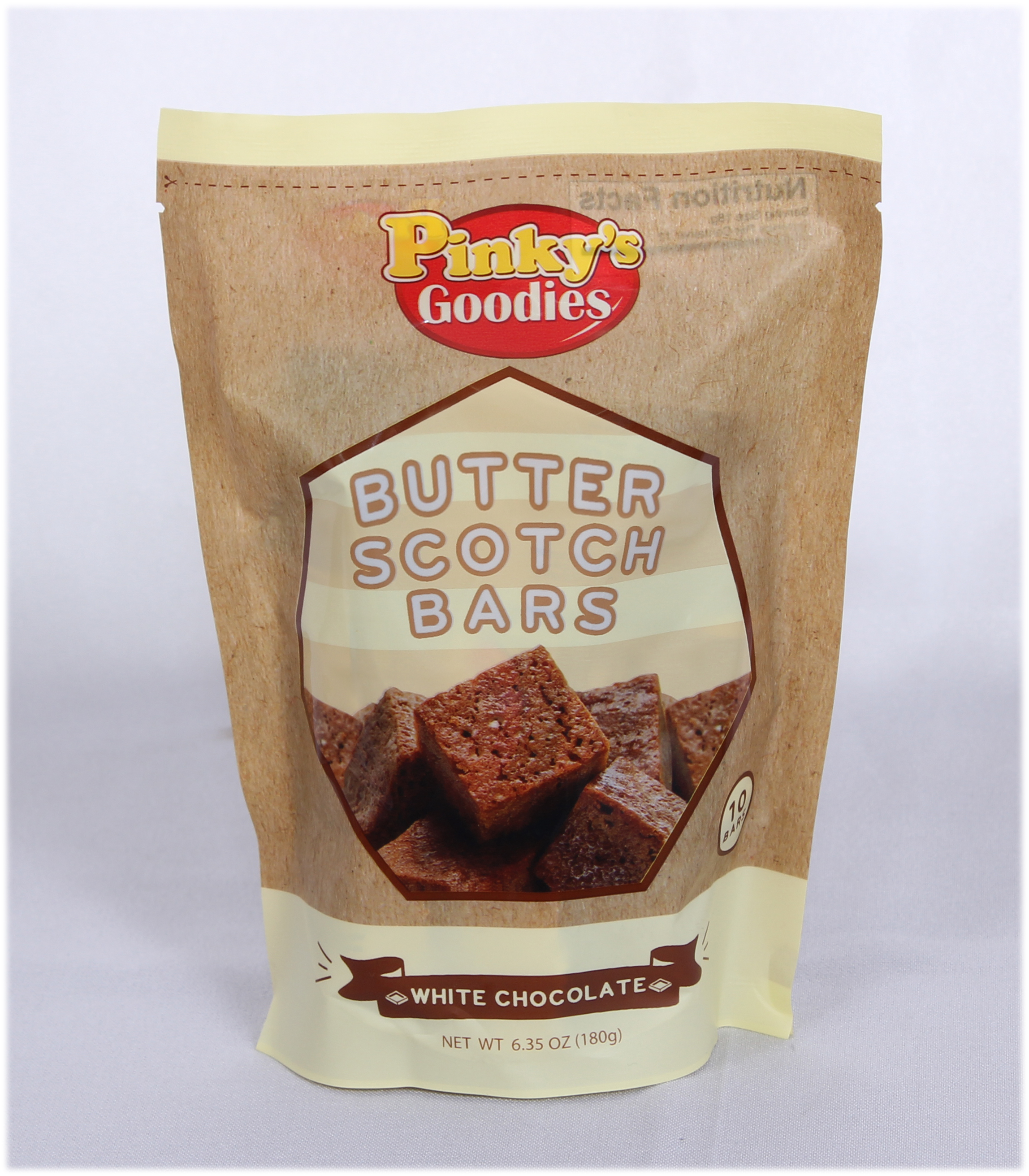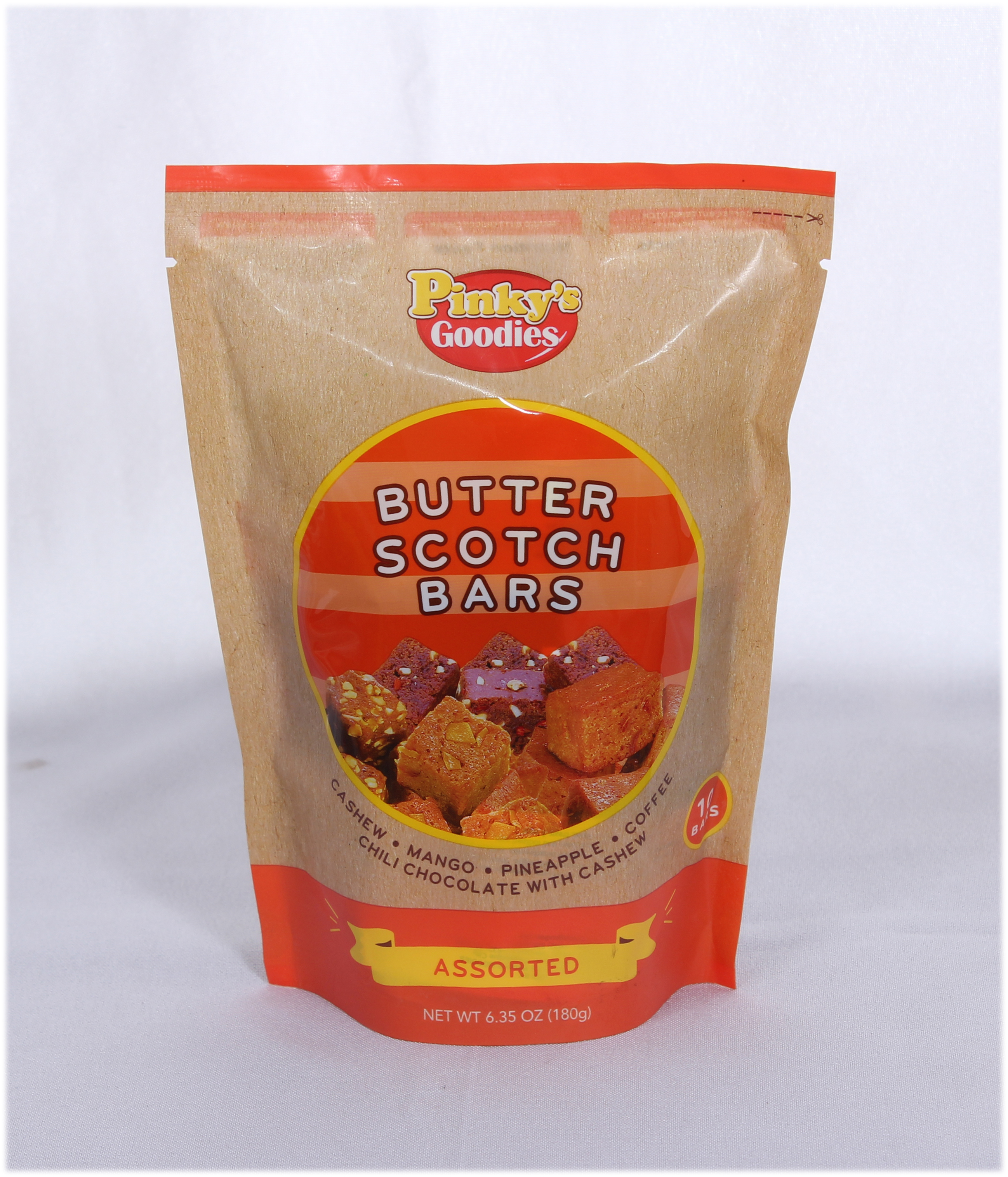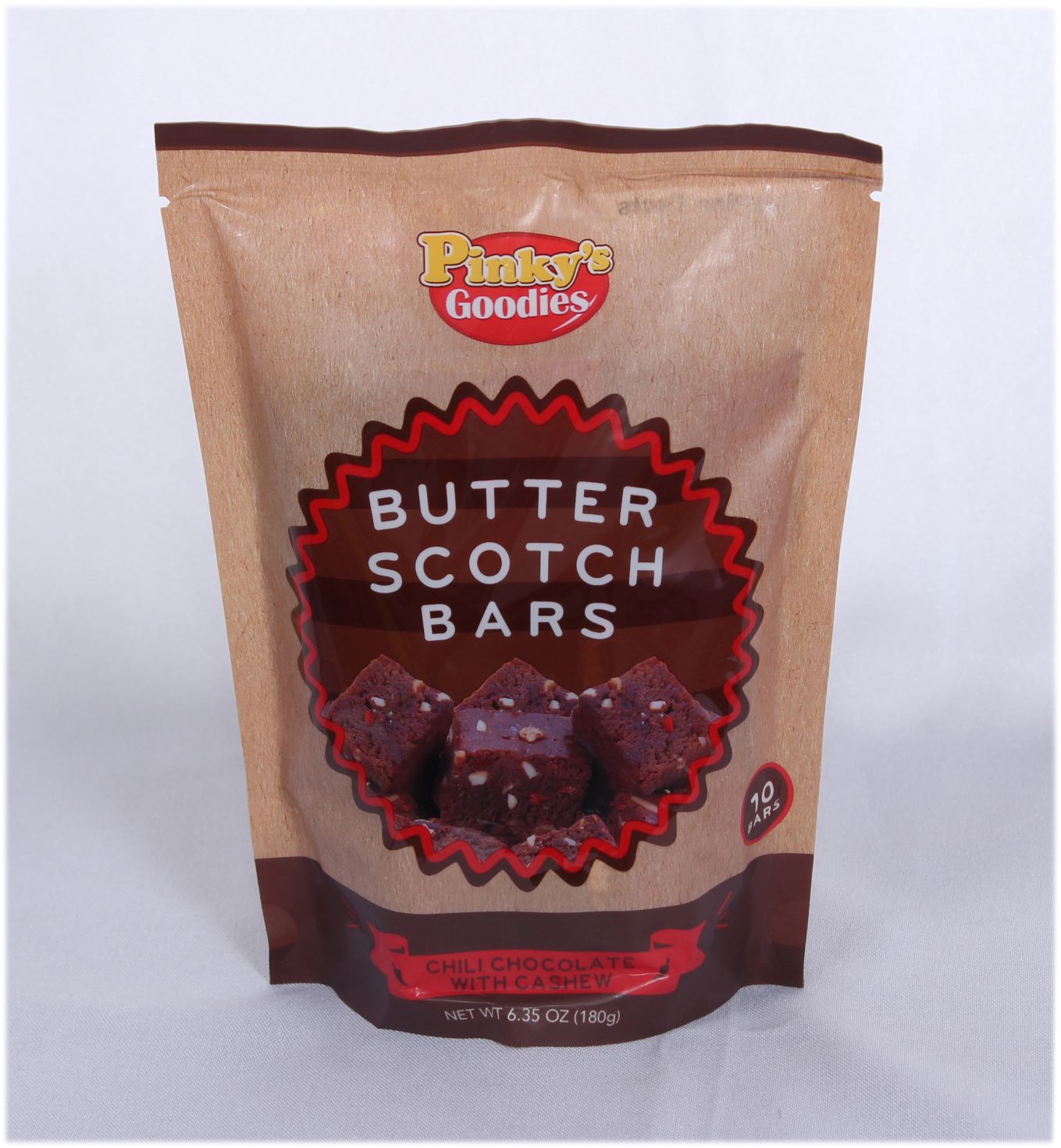 The same signature butterscotch bars with cashews, now in a stand up pouch of 10s.